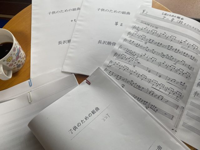 レッスンの合間に、楽譜の製本。