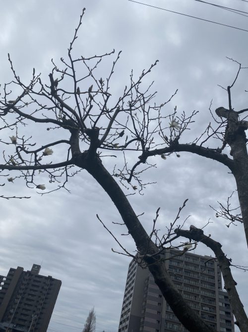 スタジオの近くのコブシの木。