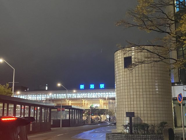 夜の新潟駅の南口、けやき通り沿いはお店に入るお客さんで賑わっていました。
